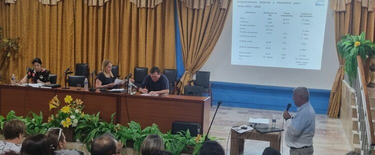 Bravo Amarante ilustró con datos concretos la ejecución del presupuesto hasta la fecha, el aseguramiento material con que se cuenta para el inicio del curso escolar (alimentación, materiales de higiene, de vida, escolar y de oficina) así como el cumplimiento de los Objetivos Estratégicos sobre la base de cada uno de los procesos que tienen lugar en la institución.